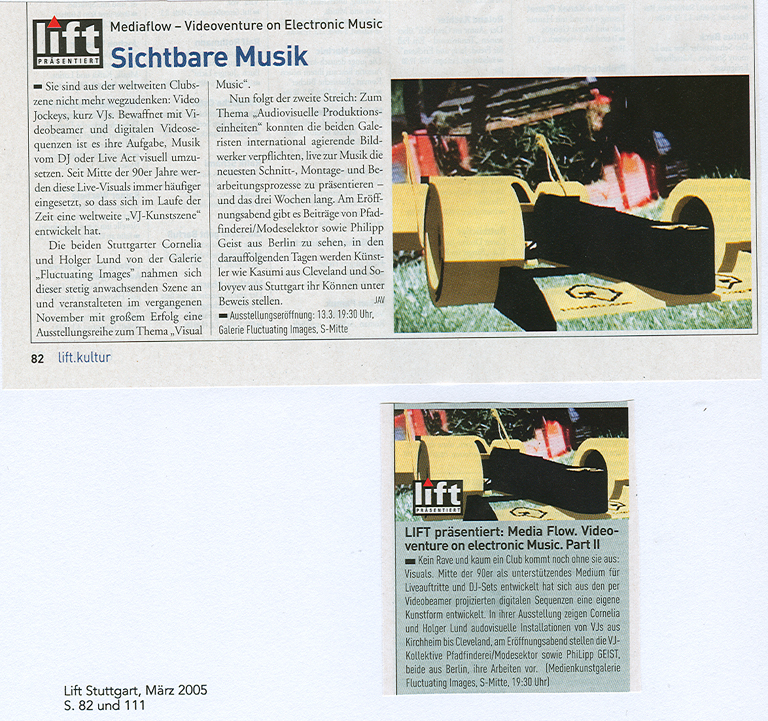 Opening: March 13, 2005 with presentations of Pfadfinderei/Modeselektor, PhiLipp GEIST (viDeogeist) and Marcel Panne/Sehvermoegen