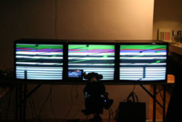 Topic of the workshop is the generation of pictures directly from the camera itself and from connected equipment without using any external material. The camera does not only work as a medium for pictures but as a producer of pictures. This may be achieved by using defective equipment, methods of feedback, or deliberate interference with the camera provoking malfunction. Starting point for this topic is an issue of reflection on media that goes back to the sixties (Fluxus and Expanded Cinema) and has become fruitful again in recent audiovisual productions (i. e. works from Yoshi, Rechenzentrum, Madame Chao a. o.).